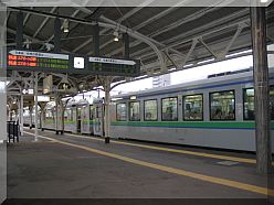 Mit einem relativ schnellen Zug geht es ohne Umsteigen ueber wenige Stationen durch Sapporo hindurch. Nach einer Fahrzeit von 1:10 Stunden sind wir am Ziel.